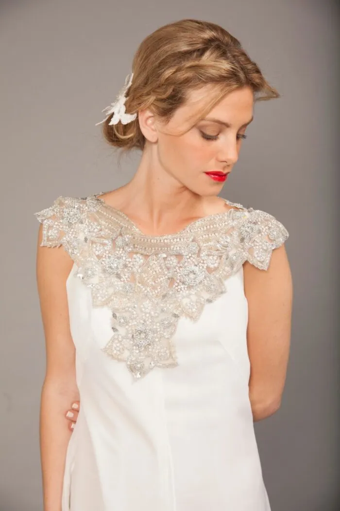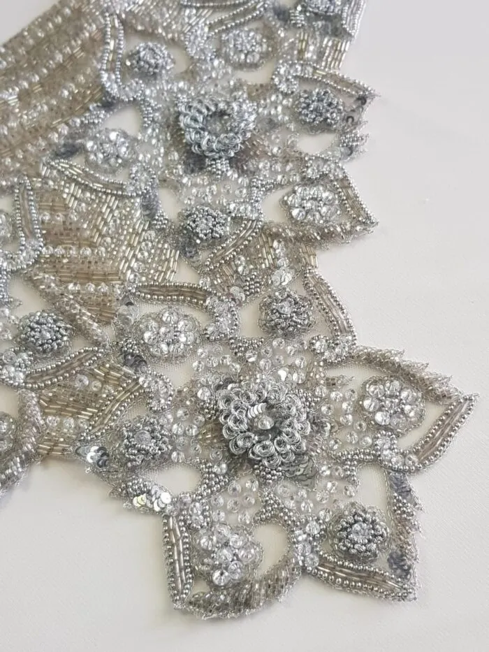 De estilo delicado y elegante, es ideal para vestidos de novia, corsetería o detalles decorativos de alta costura.